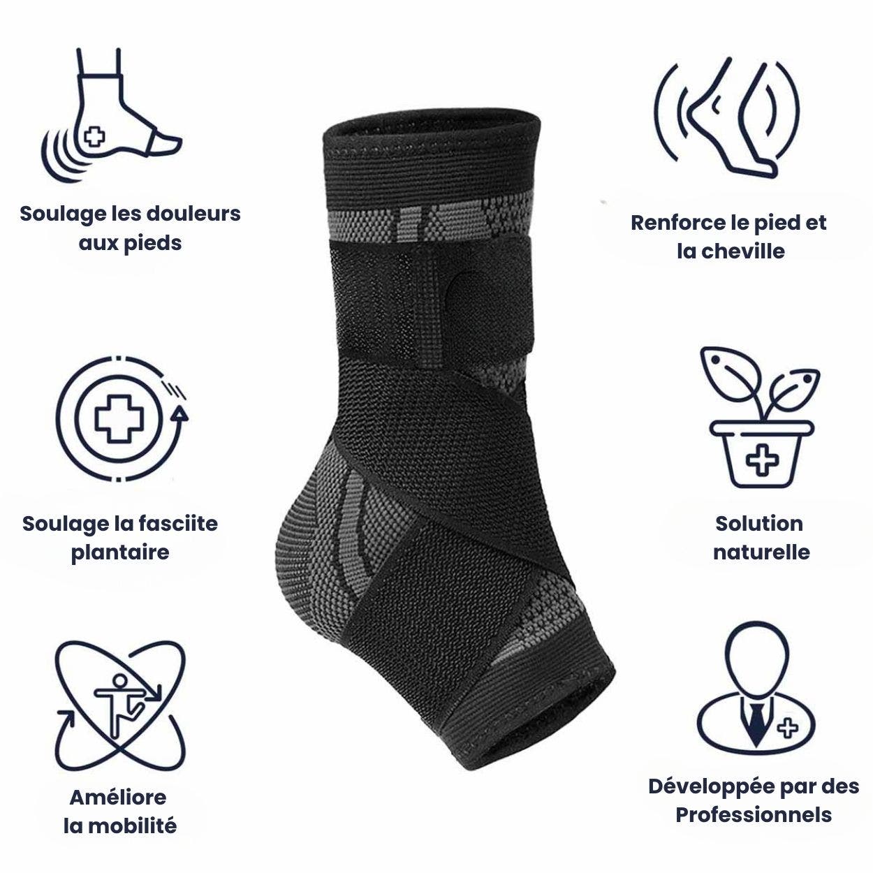 Les Chevillères OrthoCompress™ sont conçues pour soulager vos douleurs efficacement en utilisant une technologie de compression et de soutien de la voûte plantaire.