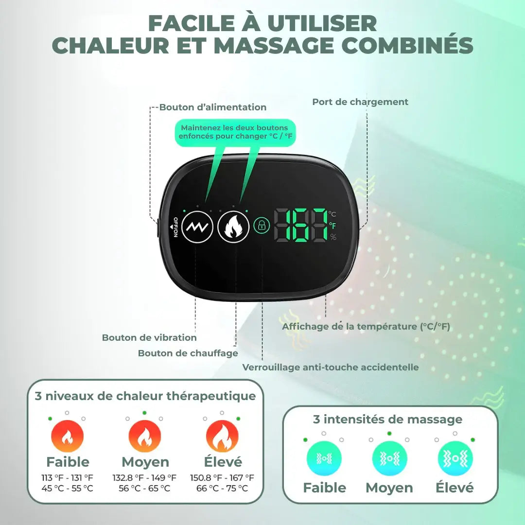 En combinant chaleur, lumière, vibrations et soutien postural, la ceinture cible à la fois les muscles, les nerfs et la colonne vertébrale pour offrir un soulagement global, durable et naturel.
