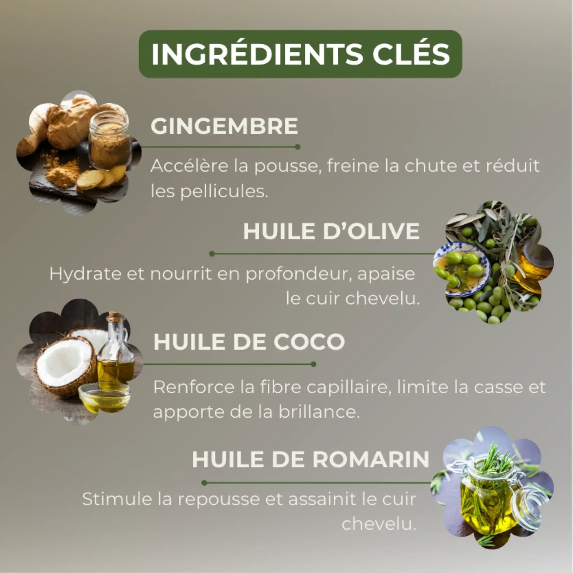 ✦ Obtenez une repousse plus rapide grace à sa formule au gingembre qui stimule la pousse des cheveux.